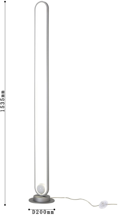 Размеры этого торшера – ширина 150 мм., высота 1535 мм. Он идеально впишется для комнаты площадью до кв.метров. Для создания подходящего освещения здесь использовано 1 ламп с цоколем LED и общей мощностью 62 Вт.