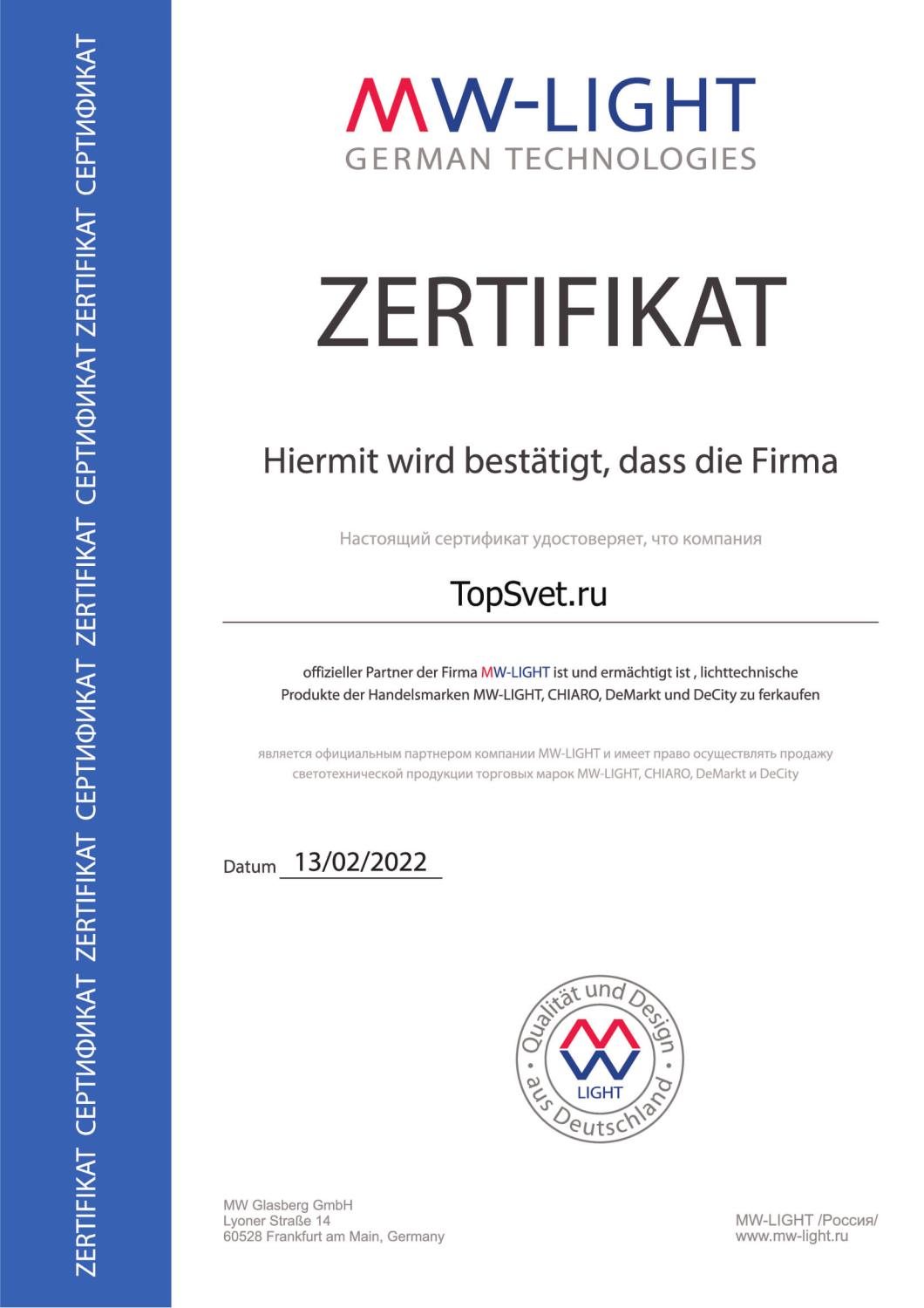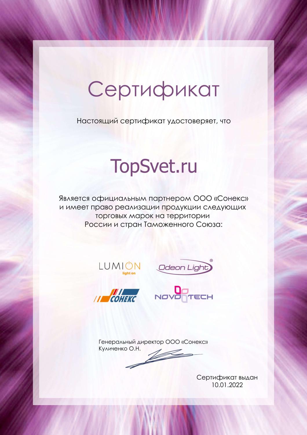 Сертификаты ТопСвет