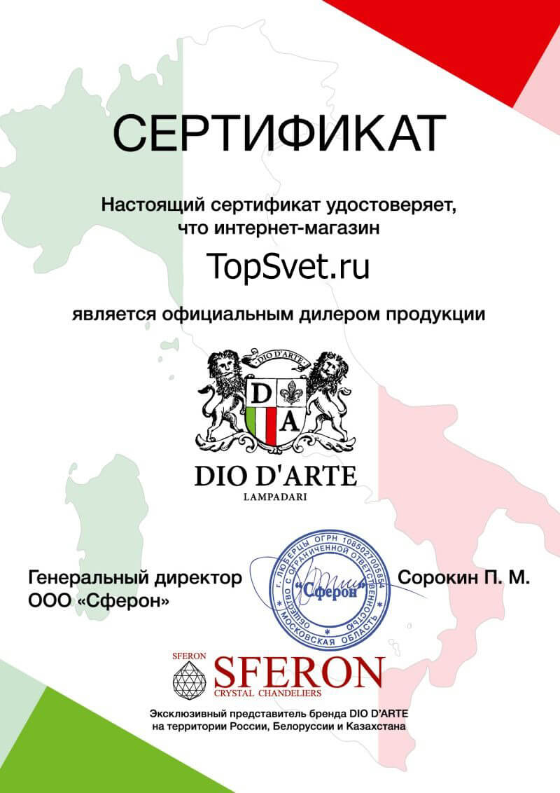 Сертификат Arti Lampadari