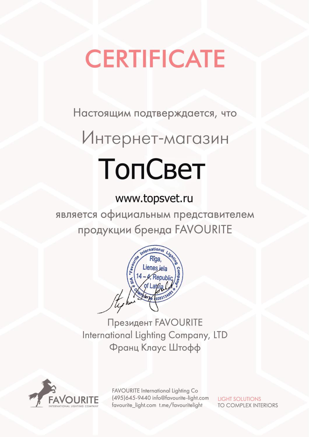 Сертификат Favourite