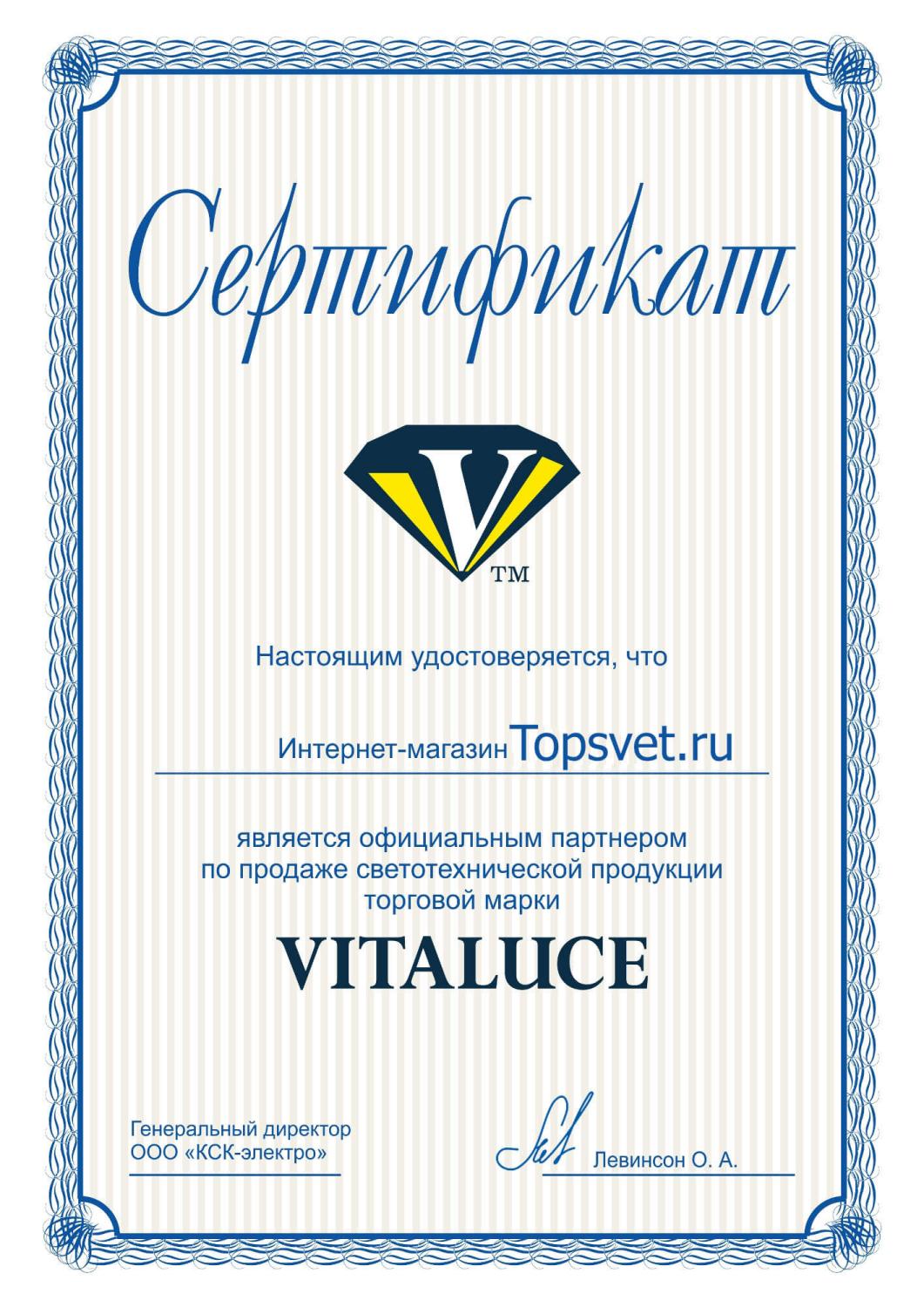 Сертификат Vitaluce